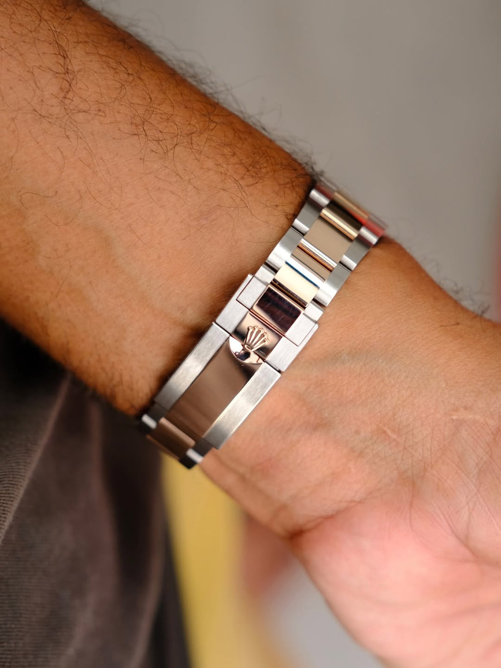 - Pulseira: Pulseira Oyster com links de aço e ouro 18k, fecho Oysterlock